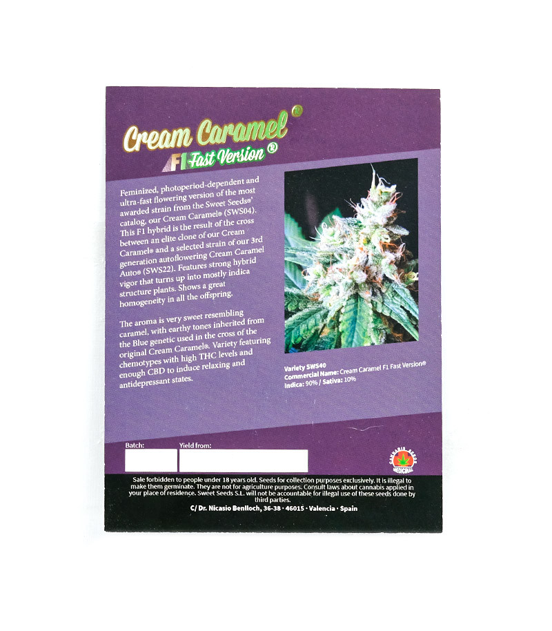 Семена сорта Cream Caramel F1 Fast Version fem (Sweet Seeds) Испания, Феминизированные, Фотопериодные, ТГК-15 - 20