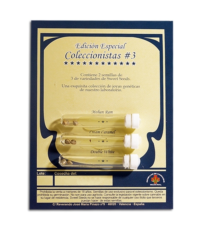 Еще один коллекционный микс от испанского сидбанка Sweet Seeds. Включает в себя три сорта, по две феминизированные семечки на каждый. Все представленные в этом собрании гибриды украсят сад любого гровера, вне зависимости от его опыта в коноплеводстве. Микс составлен из семян Cream Caramel, Double White и Moham Ram. Можно с уверенностью сказать, что все сорта порадуют своих владельцев богатым урожаем, прекрасными ароматами и привлекательным внешним видом.
