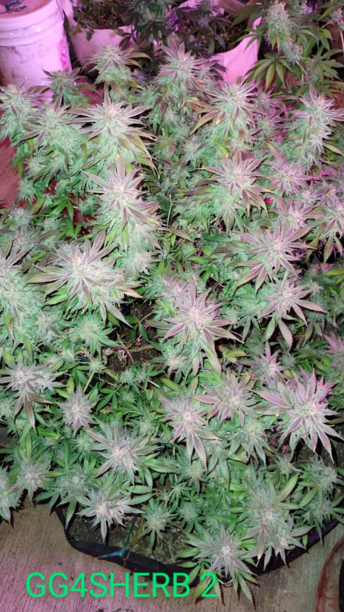 GG4 Sherbet FF - это растение, за которой мне пришлось все время бороться. Оно стало слишком темным, без всякой причины, и большую часть времени всегда выглядело несчастным, но временами ясно вздыхало от счастья. Это растение имело очень светлый цвет большую часть своего роста. Очень сильный лимонно-химический запах, почти как чистящее средство, что странно, но это хороший запах, когда он исходит от кустов, очень сильный запах. Также может потребоваться больше света. В общем, было с ним непросто и я не могу сказать, что оно мне сильно понравилось. Но оно определенно стало моим самым уникальным растением, которое я выращивал до сих пор, может быть, через неделю я попробую провести повторную обработку. Цвет изменится на желтый и фиолетовый, доходность была наименьшей из всех.