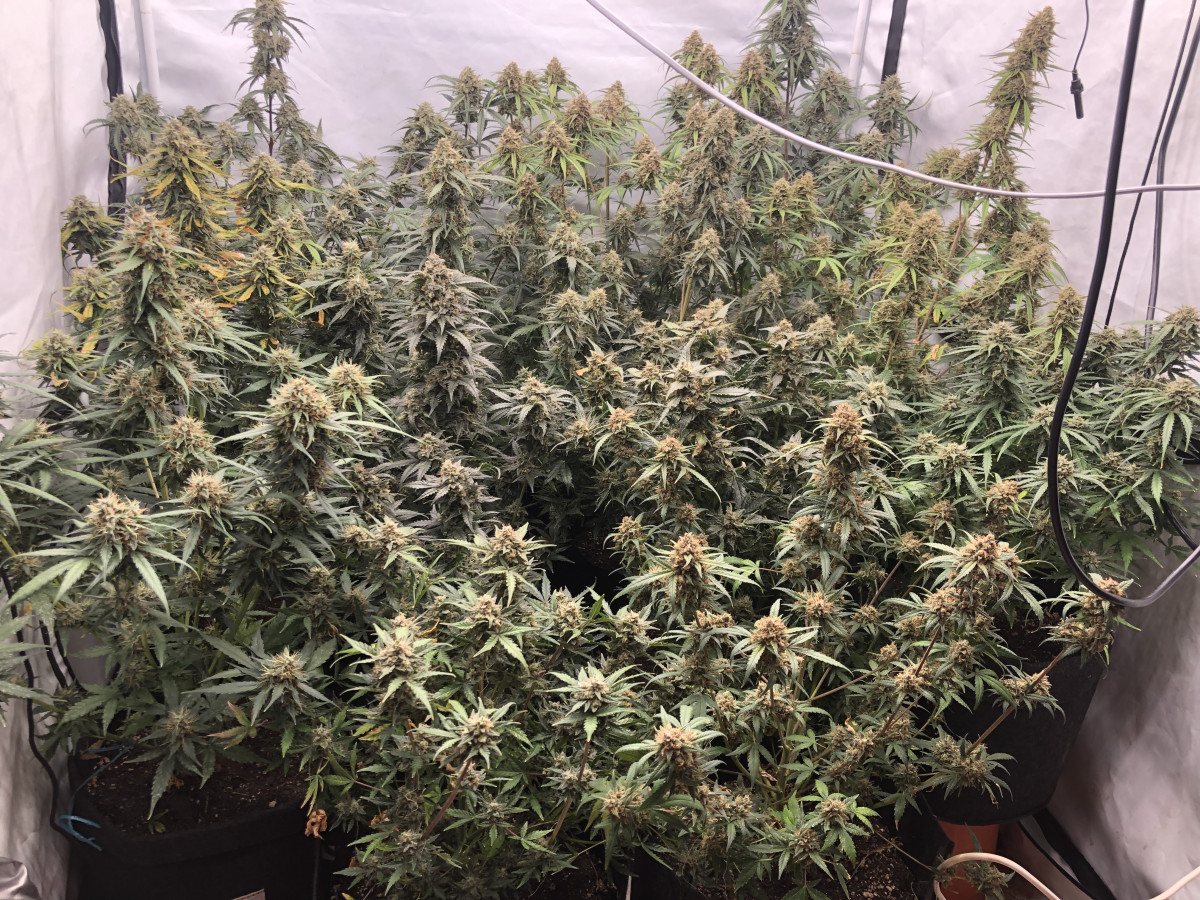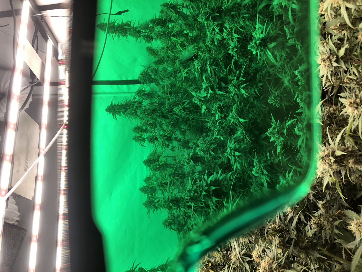 В горшках 20 л в кокосовом субстрате Plagron с перлитом жрут по 6 литров через день. Сегодня 42-ой день от каски, Plagron coco A и B + Pure Zim + Power Roots + Sugar Roal + Green Sensation, палатка 100*100*200 см, свет Sinowel 480 Вт + 120 Вт +120 Вт = 720 Вт