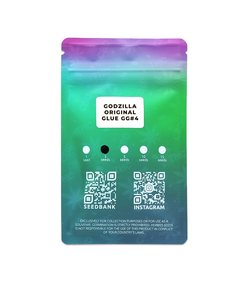 Семена сорта Godzilla Original Glue GG#4 (Godzilla Glue #4) fem (Herbies Seeds) Испания, Феминизированные, Фотопериодные, ТГК-29