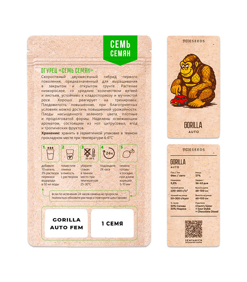 Семена сорта Gorilla Auto fem (Семяныч) Страны Европы, Феминизированные, Автоцветущие, ТГК-27