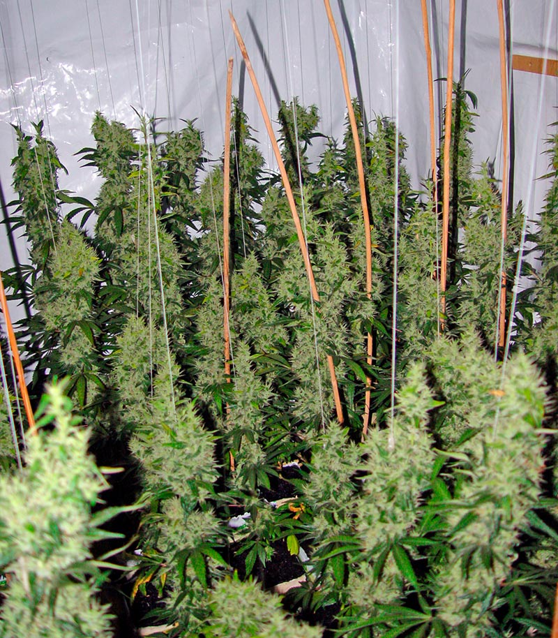 В индоре средний рост кустов достигает 120-160 сантиметров, что вполне подходит под размеры стандартного гроубокса. Листьев на кустах значительно меньше, чем соцветий, что позволяет последним впитать в себя максимум света. Нижние стебли тоже не остаются обделенными. В итоге растишка покрывается таким количеством смолы, что начинает буквально блестеть.