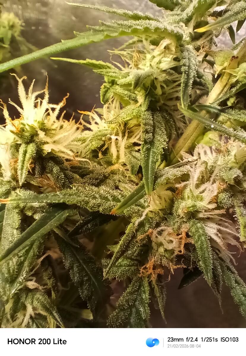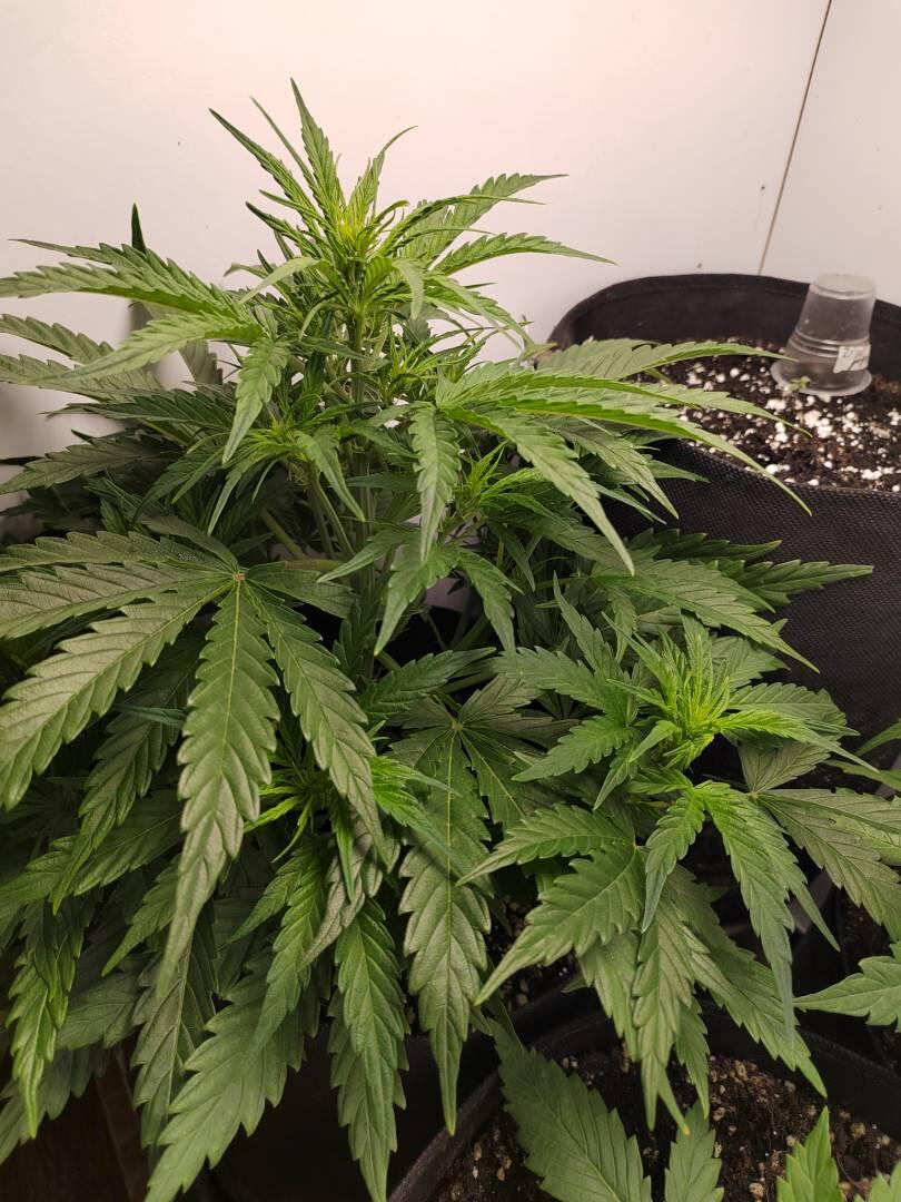 Кустику месяц от роду, выглядит как настоящая ёлочка на рождество.Главным достоинством,думаю, будет то что этот сорт не нуждается в дефолиации,куст сформировался сам правильно.( В отличие от бонусных " сумасшедших " ) Очень красиво переходит в цветение уже, звёздочки будущих кол...КРАСОТИЩА А НЕ СОРТ.Очень радует красивый куст.Хоть я совсем ничего не делал,ни подгибал,не срезал ни одного листа )