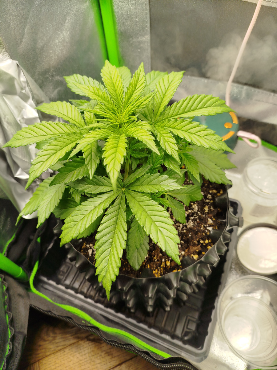 Она настолько красиво выглядит, что ей можно любоваться, кушает вообще отлично, поливаю по мере просыхания грунта, каждые 3 дня, ни перелива, ни недолива, рН стабильно 6-6,3, до харвеста ещё недели 3, может чуть меньше, будем смотреть, но я уже не удержался и рубанул одну шишку на дегустацию, и прослушил в духовке на 60° по 10 минут, пока не просохнут, и это просто треш, мой 2х-летний стаж просто исчез после одной хапки, будто его и не было, так прошибло мамамиа, что будет когда они созреют боюсь представить, боялся что содержание тгк маленькое, но зря