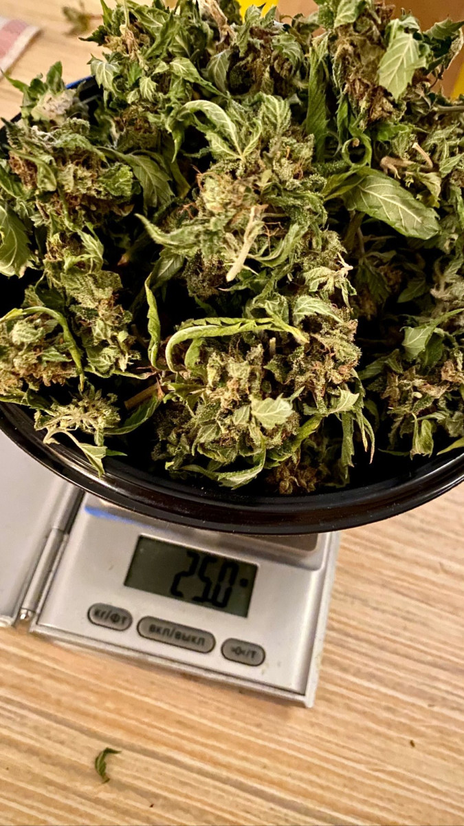 Харвест пришелся на 19 недель после недельной промывки. После сушки вышло 253 грамма с двух растений, хотя, не имея опыта, я вообще не надеялся получить больше 100 грамм. Воздействие мощное, эйфория накрывает так, что аж распирает изнутри. Но стоит чуть переборщить или добавить, то ждите паранойю.