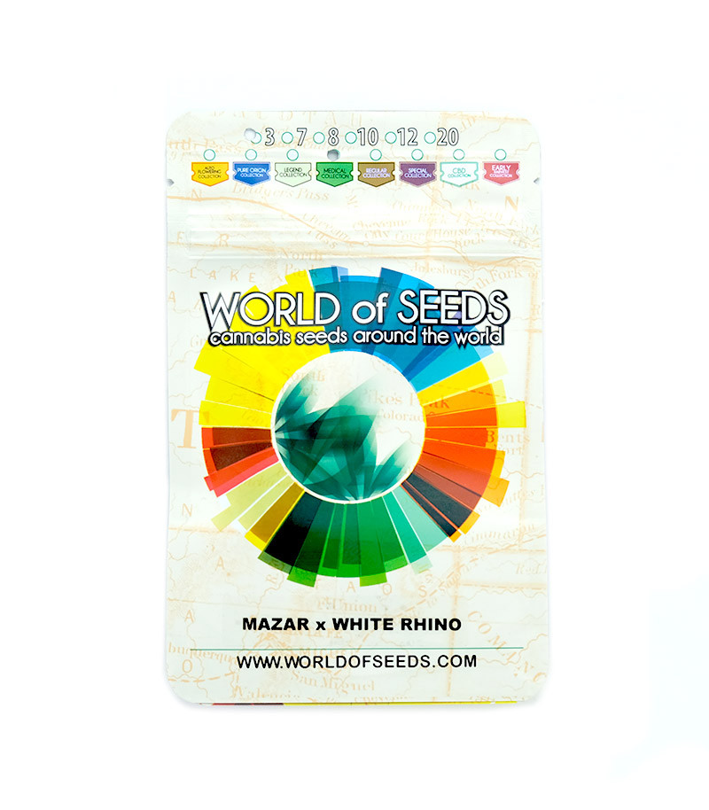 Семена сорта Mazar X White Rhino fem (World of Seeds) Испания, Феминизированные, Фотопериодные, ТГК-20