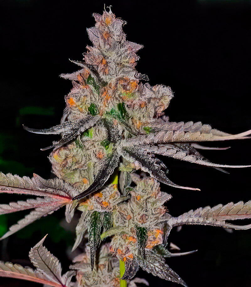 Цветение Mellowz длится 8 - 9 недель. Где-то ближе к середине этого срока кусты теряют свой привычный зеленый облик и уходят в темно-синие, фиолетовые, а иногда даже почти черные оттенки, становясь центром притяжения внимания даже в самой экзотической оранжерее. Особенной яркости визуальным эффектам придает густой слой трихом. Они, словно кристаллики сахара, сверкают на поверхности бутонов и наполняют воздух густым ароматом спелых фруктов.