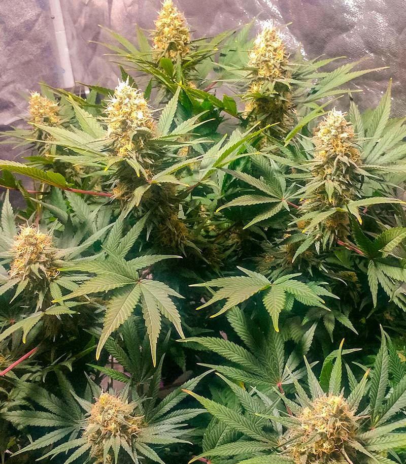И хотя в генах каннабиса Pharaoh преобладает Сатива, структура кустов и иммунитет ему достались от Индики. Его можно смело высаживать в индоре и аутдоре, грунте и гидропонике – везде он чувствует себя как рыба в воде. Кусты вырастают компактными и очень разветвленными, что крайне положительно отражается на их производительности. Только представьте, при росте всего в 55-110 см одно растение в условиях аутдора способно подарить гроверу 500-1500 г шишек. Разве не потрясающе? Период созревания бутонов при этом длится всего 60 дней. Это позволяет высаживать гибрид практически на всей территории умеренного климатического пояса.