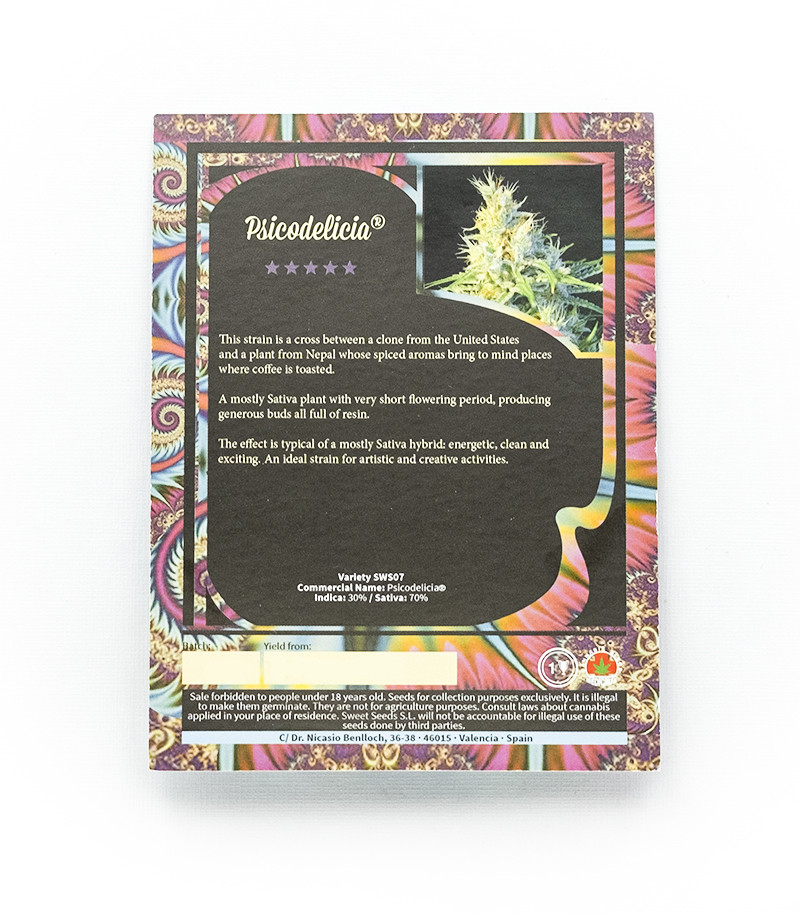 Семена сорта Psicodelicia fem (Sweet Seeds) Испания, Феминизированные, Фотопериодные, ТГК-15 - 20