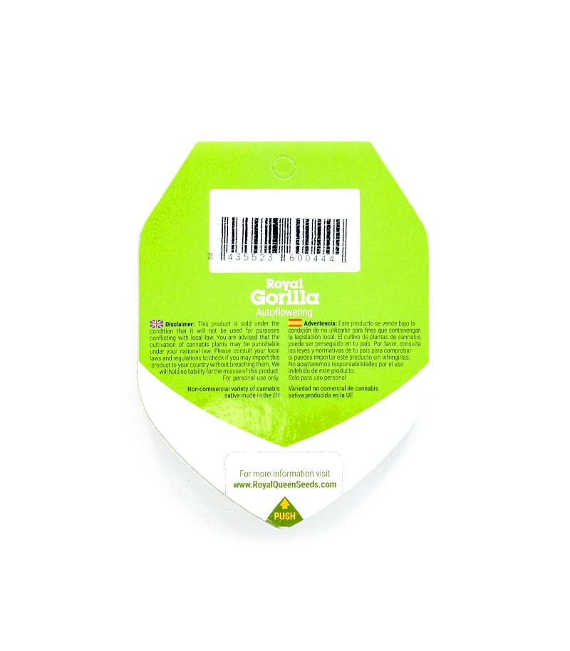 Сорт конопли Royal Gorilla Automatic fem от Royal Queen Seeds – новая ступень в развитии автоцветущего каннабиса. В его основу легла самая успешная генетика Западного побережья США, которую гибридизировали и тщательно стабилизировали, чтобы максимально упростить жизнь гровера. Сорт подарит садоводу шишки с 20% уровнем ТГК, которые произведут впечатление даже на самого закоренелого циника, спустя всего 8 недель цветения.