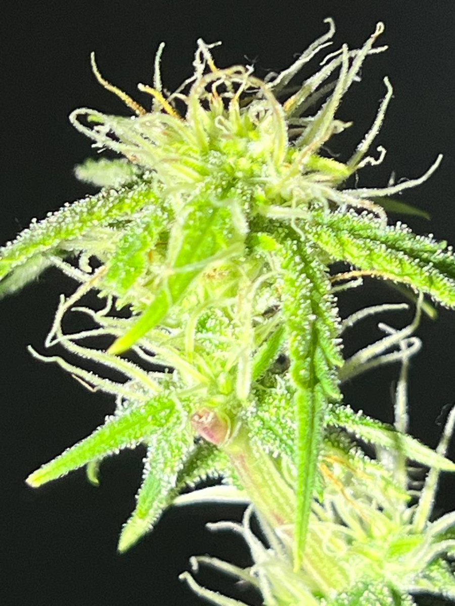Я очень доволен опытом выращивания этого сорта на улице, под открытым небом. Выделил 2 генотипа, один из них с более сативными свойствами относительно соотношения листвы/цветов и с фруктовым вкусом, а второй немного темнее по цвету и более пушистый. Кусты вымахали до 2.5 метров в высоту.