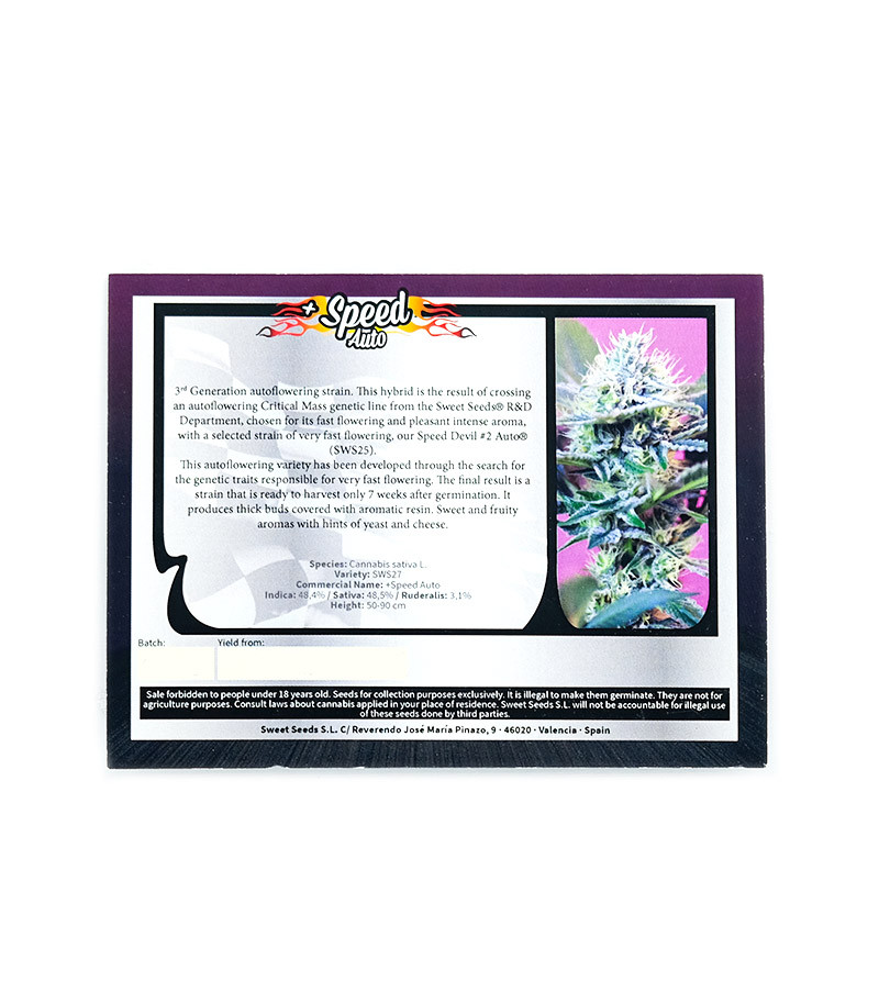 Семена сорта + Speed Auto fem (Sweet Seeds) Испания, Феминизированные, Автоцветущие, ТГК-15 - 20