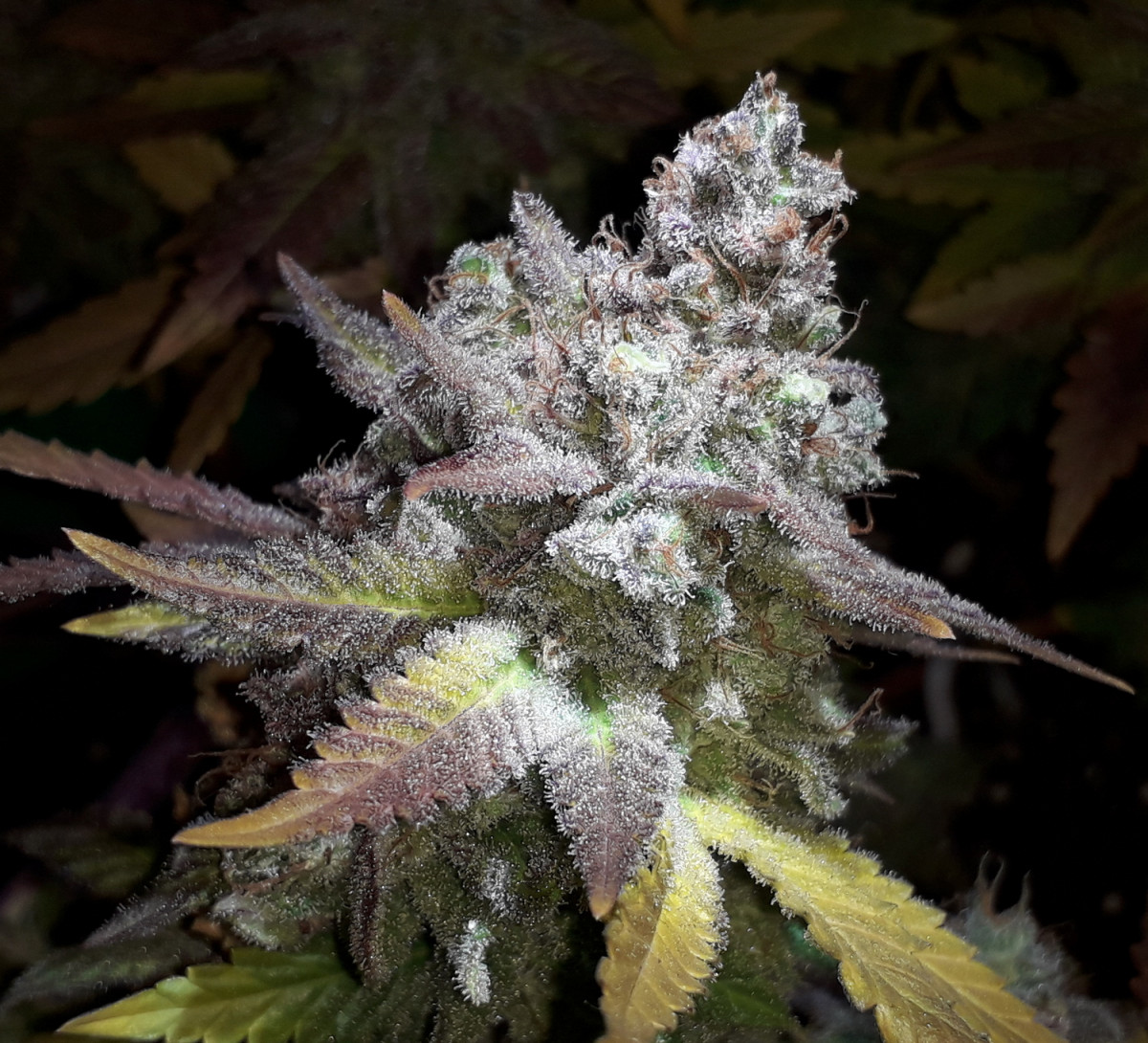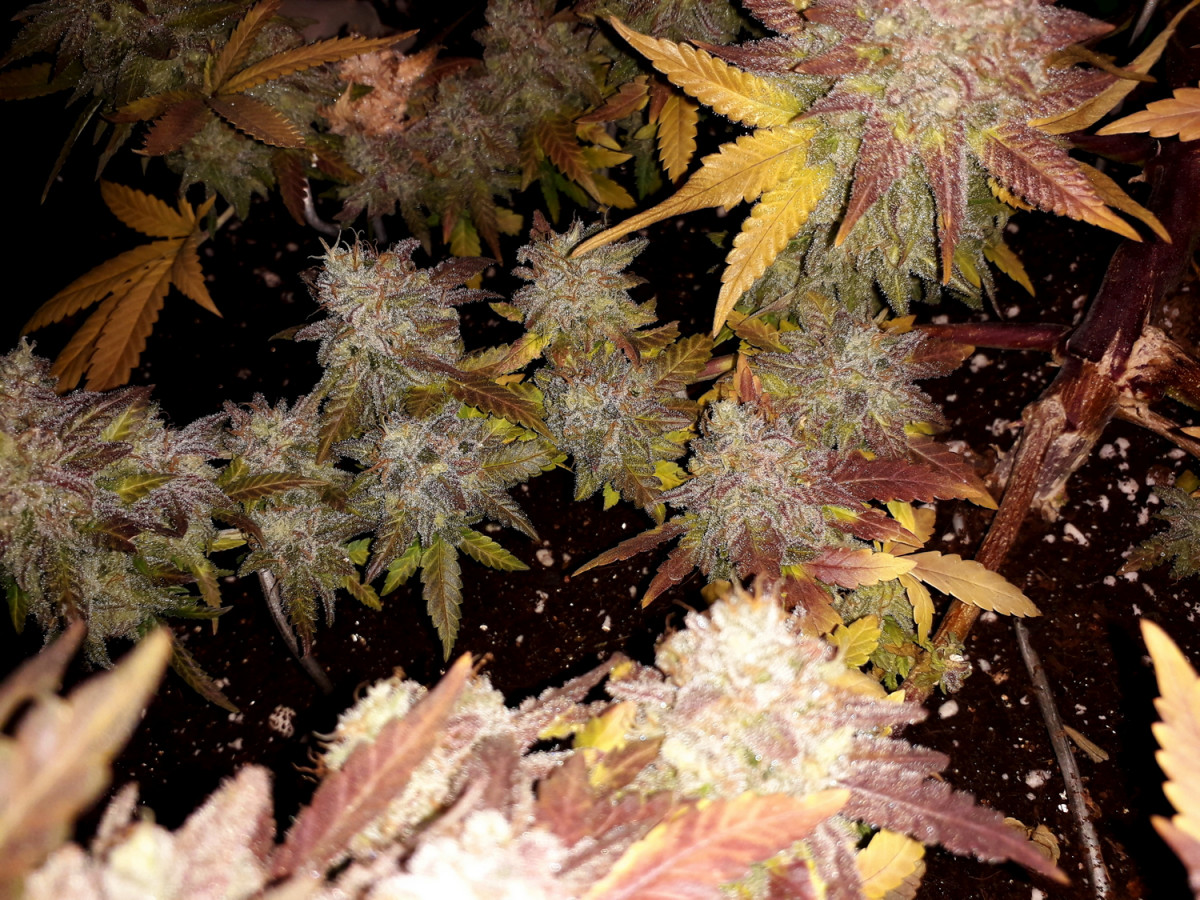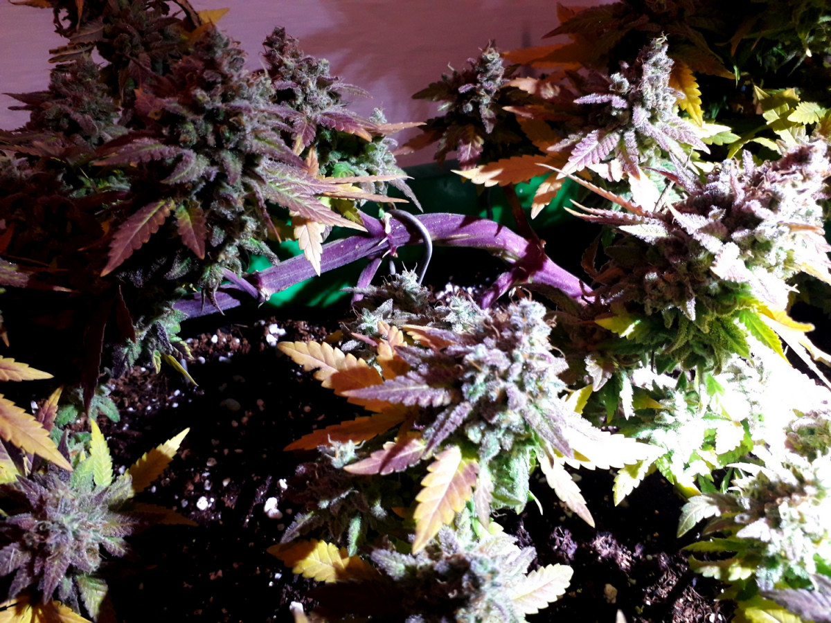 Мой любимый сорт ращу 2й раз аут 2 мес веги 65 цвета, ещё постоит 10 дней. Скрог его тема. Один куст с розовыми стигмами другой обычный. Убивает как я люблю