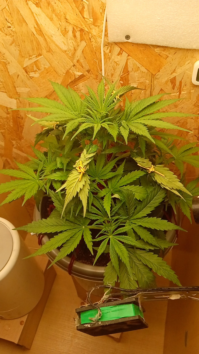 Первое как я говорил я чуть не убил 2 дня простоял под температурой примерно 14 гр и не было нужного света очень тормозил на веге но удобрения дали результат очень много раз зевал на включении и выключении света и полива. Ребята сорт реально не прихотлив и даёт неплохие результаты сейчас шишки объемные и реально смолистые если немного пощупать (не рекомендуется) запах довольно сильный но очень приятный. Запах мне кажется отдает хвоей чутка лимоном и совсем чутка цитрусовыми а в целом я доволен отпишу по результатам взвешивания а затем так же отпишу по результатам готового сухого продукта что бы люди понимали что они будут растить.