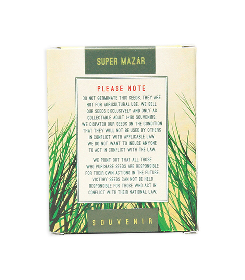 Сорт конопли Super Mazar от Victory Seeds – это гибрид поколения F1, полученный в результате скрещивания растений Afghan и Skunk. Селекционерам удалось значительно улучшить вкусоароматические качества и производительность растишки. Она надежна, стабильна и устойчива. Уровень ТГК достигает 21%.