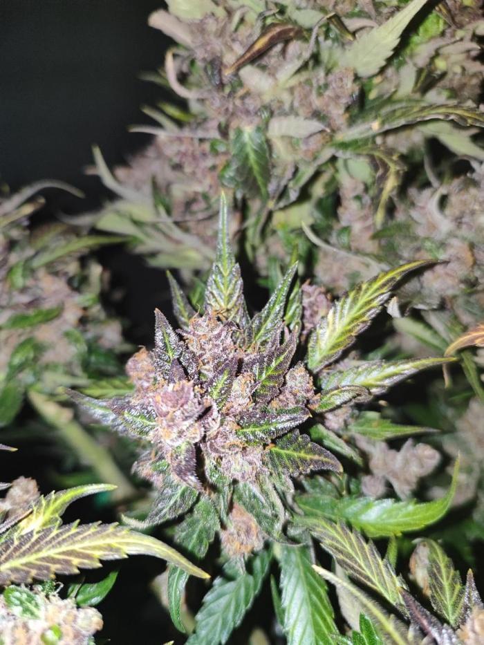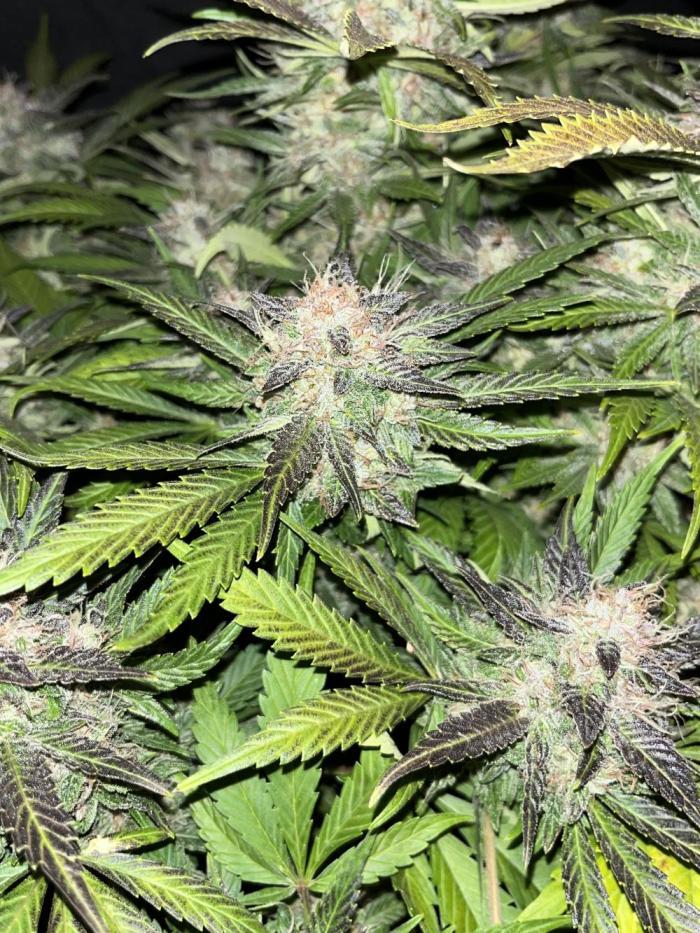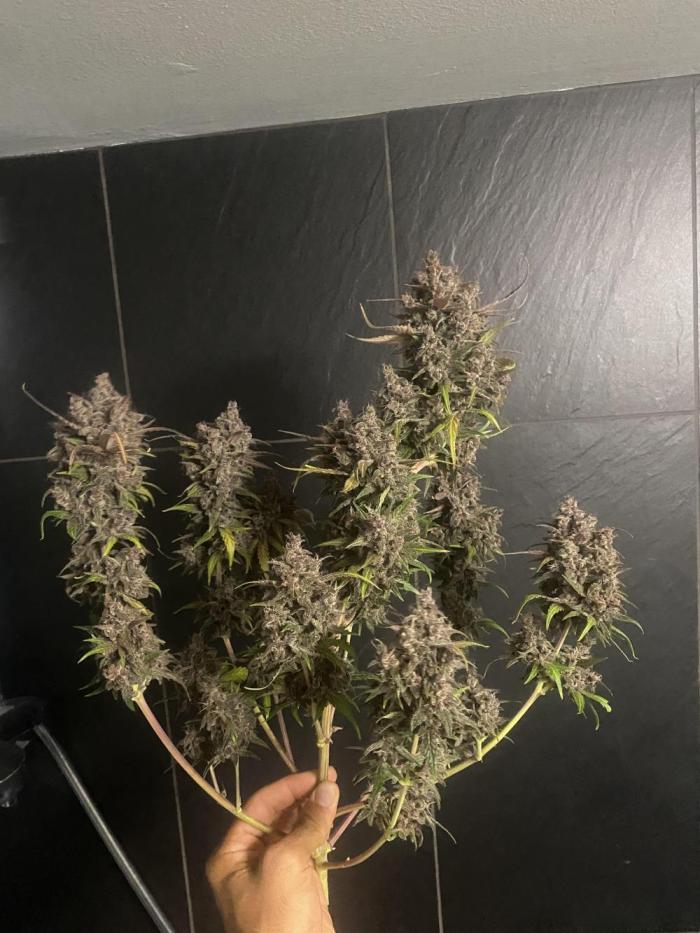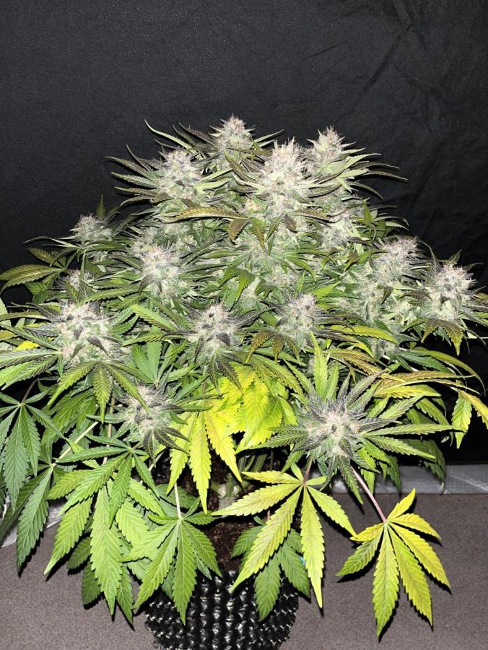 Брал 1 семечко. Проклюнулось быстро, без каких либо проблем. Из тренировок делал только топинг листьев, на макушке. Что бы боковые побеги догнали центральную колу. В итоге куст вымахал 110см! Запах практически отсутствует. Только если потрогать сами шишки, руки будут пахнуть. Трихомы практически отсутствовали на сахарных листьях, а скми шишки хорошо покрыты. Подкормку давал каждый третий полив, с учётом того, что поливать приходилось почти каждый день по 4л. Горшок 20л. Я не рассчитывал вырастить такой большой куст. Ну как уж вырос)) проблем не возникало никаких. Сами шишки зелёные а вот листья в последнее две недели стали фиолетовые. Простояла 85дней, хотя заявлено производителем 56-63 дня. Смотрел по состоянию трихом, дождался пока янтарные займут 30% от молочных. Очень мягкая во время дегустации. Вкуса я ягодного с печеньем не почувствовал. К слову сказать, мне ещё не доводилось испробовать хоть какой-то сорт со вкусом. У все примерно одно и то же. Разница составляет только в лёгкости и мягкости употребления. Наверное если сделать концентрат, возможно что-то и будет. В целом сорт не плохой и легко гровится. Общий вес готового продукта 142 гр. шишки хорошо обработаны и подстрижены. В целом смело могу посоветовать к выражению! Стоут весьма ощутимый, но мягкий и приятный. Не горлодёрка. В очередной раз благодарю Семяныч,за предоставленную возможность вырастить такое растение!!