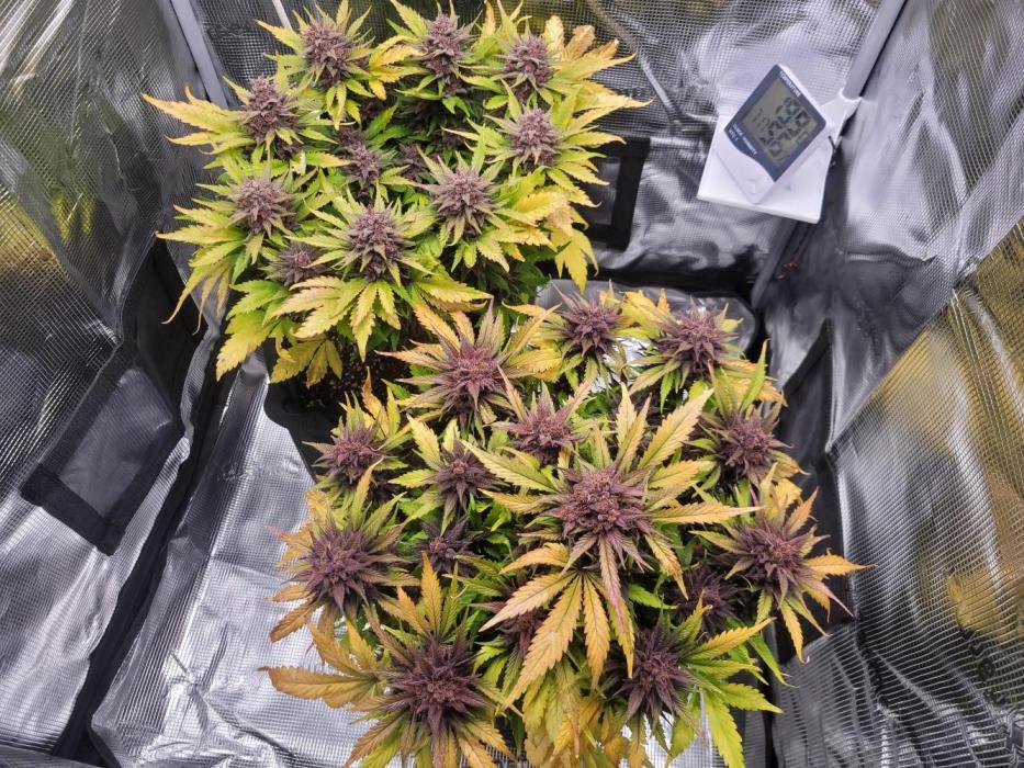 Эти растения покрылись шишками сверху донизу на каждой ветке. И это были самые пурпурные шишки, которые я когда-либо видел, и их было очень много. Пахнут и выглядят великолепно. Настоятельно рекомендую, и сам буду выращивать этот сорт снова.