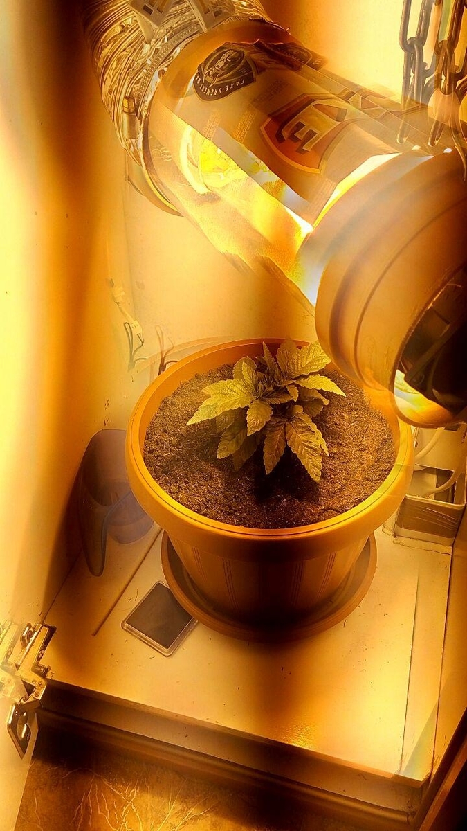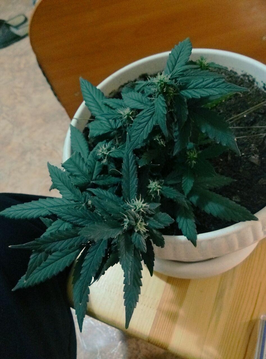 Кусту 2 недели. Рост уверенный, листья красивые. Растить нужно с угольным фильтром - из-за индюшной генетики запах уже с такими размерами очень неплохо ощущается.