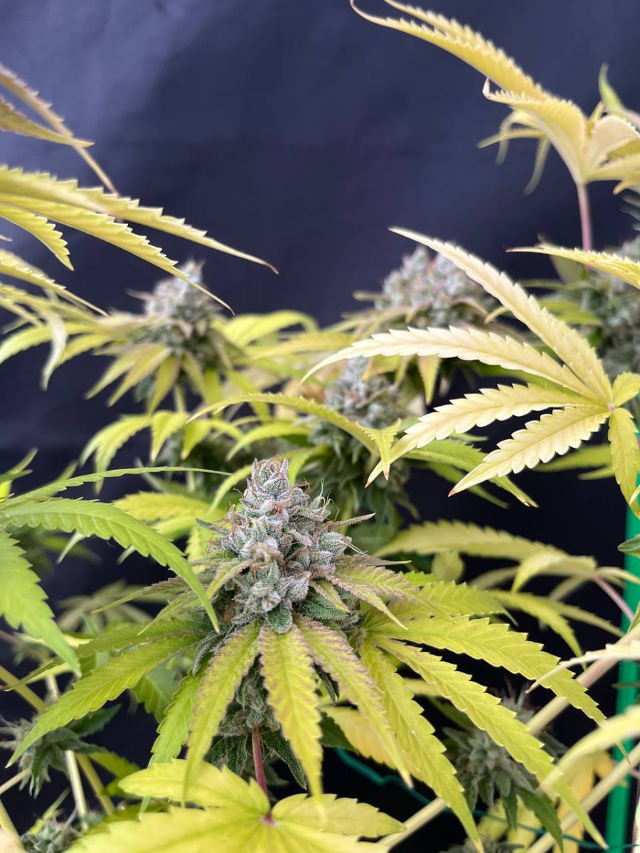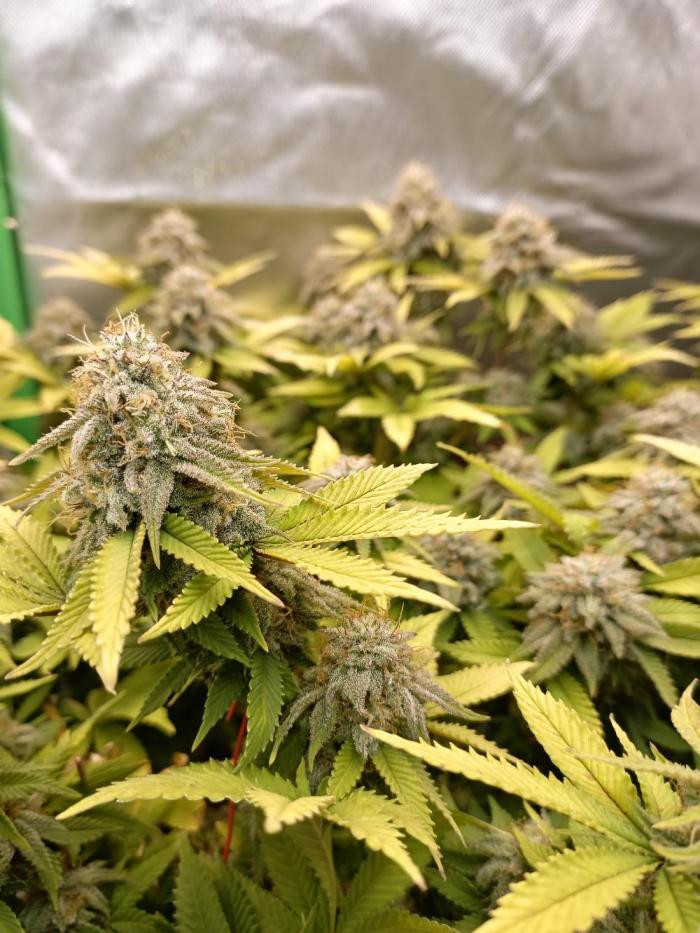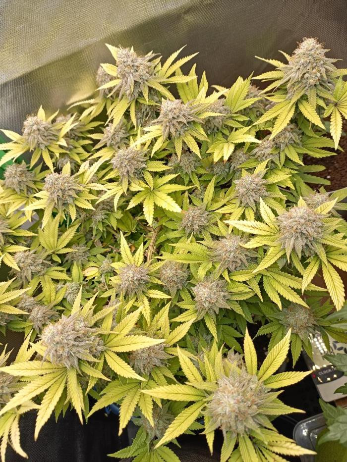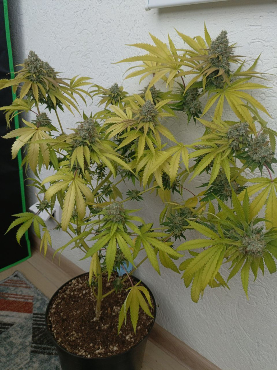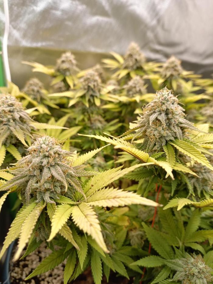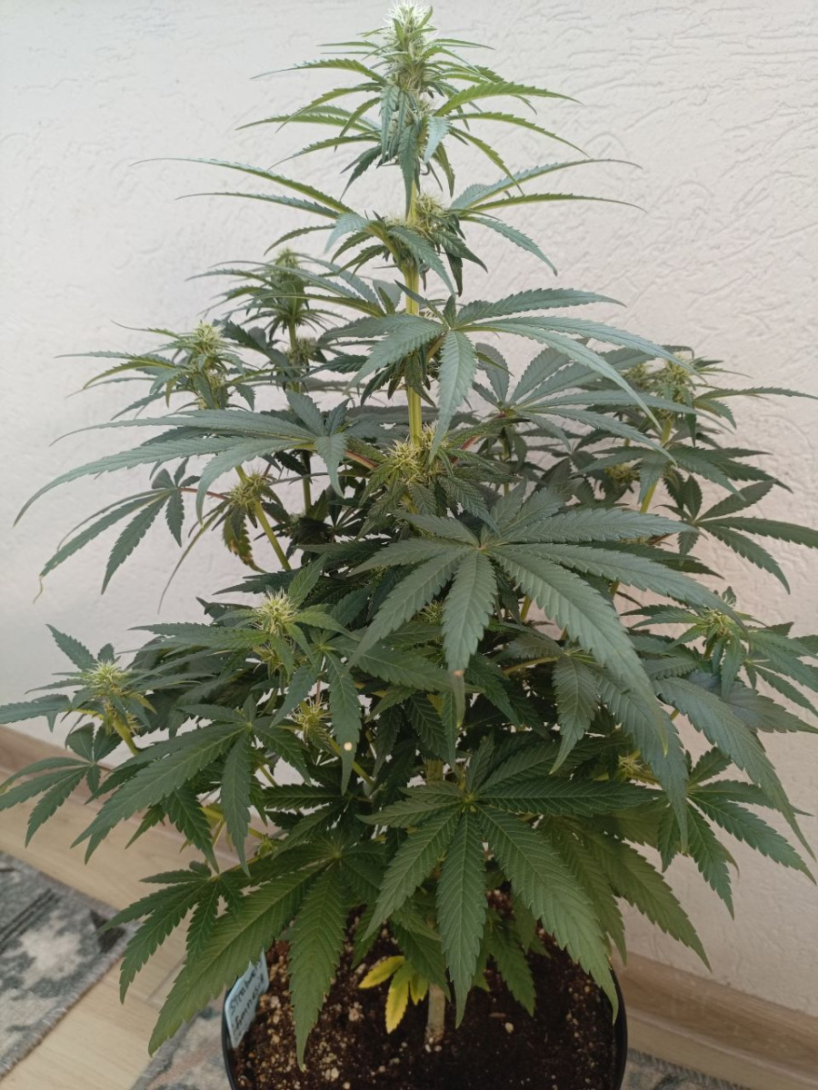 50 дней цветения, растет как на дрожжах, удобрения кушает много, запах на данном этапе переходит с более лимонного на более афганский,буду держать как по паспорту, а далее увидим.