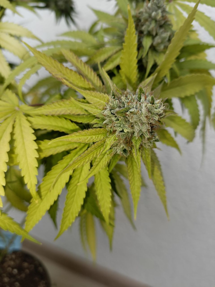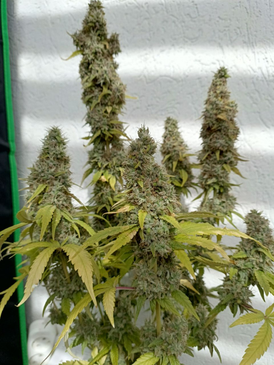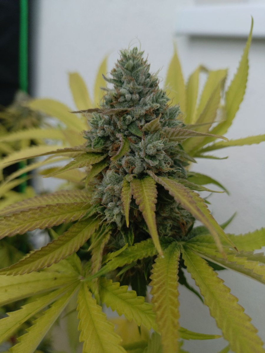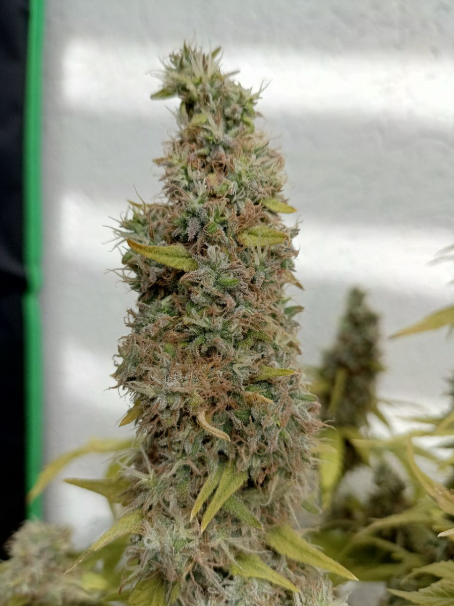 50 дней цветения, растет как на дрожжах, удобрения кушает много, запах на данном этапе переходит с более лимонного на более афганский,буду держать как по паспорту, а далее увидим.