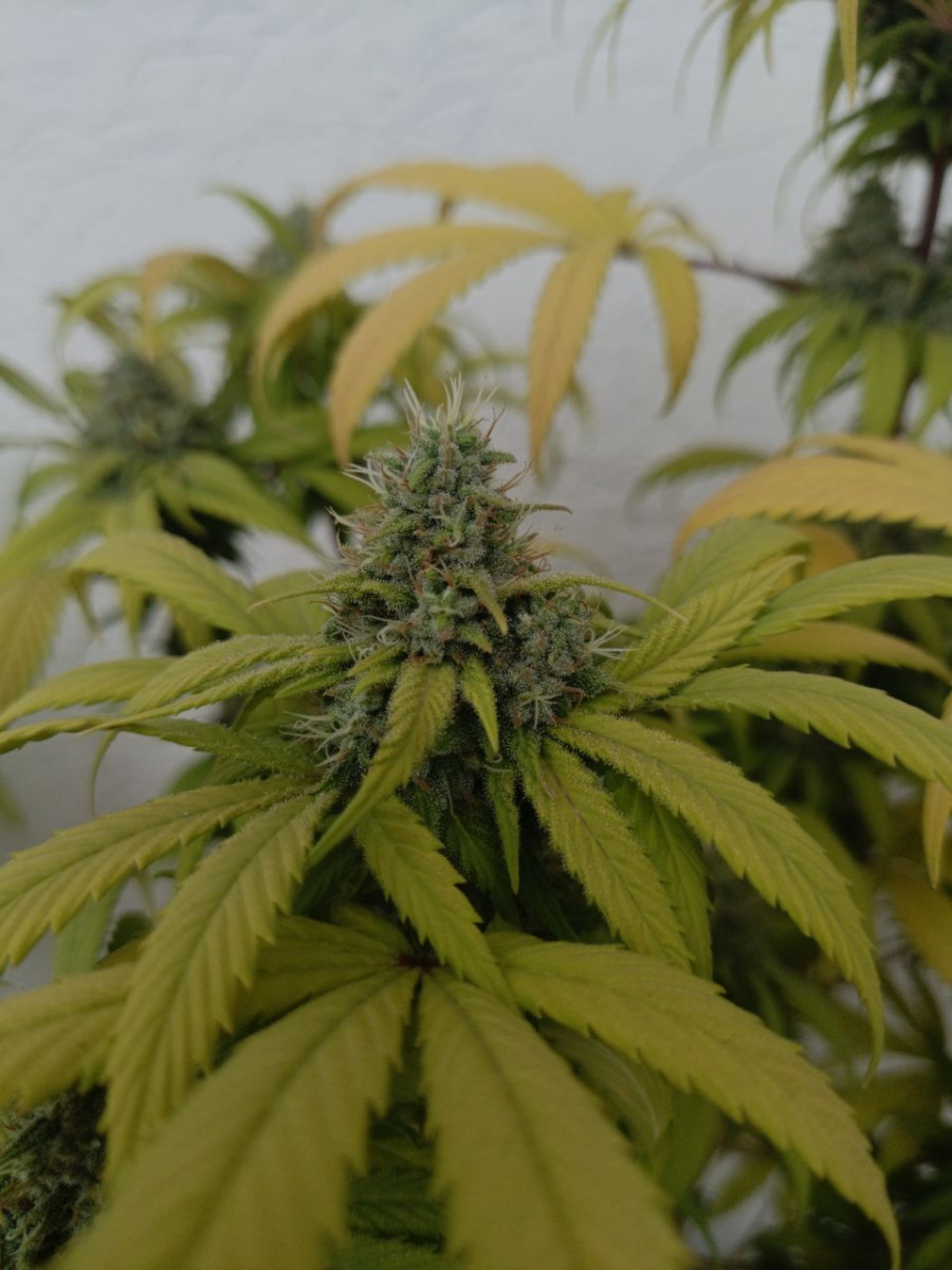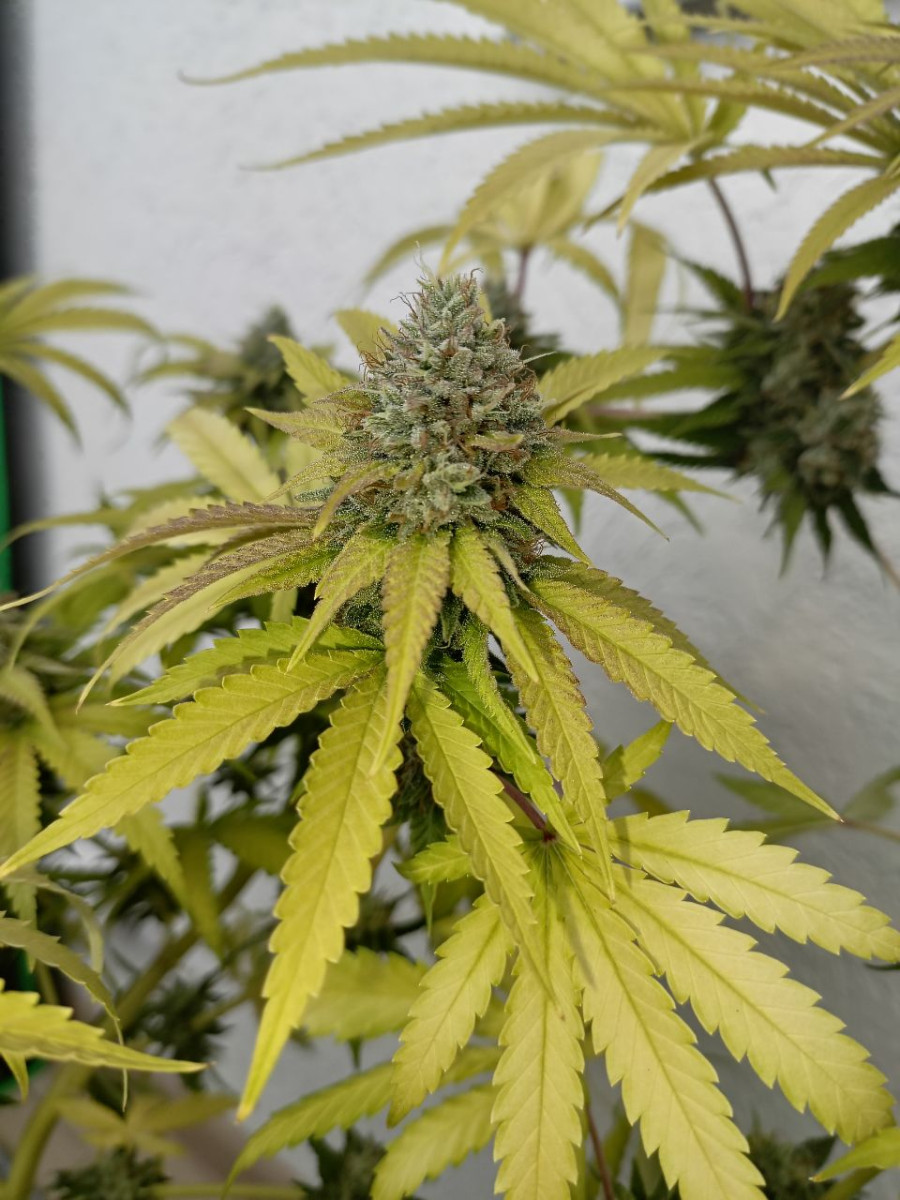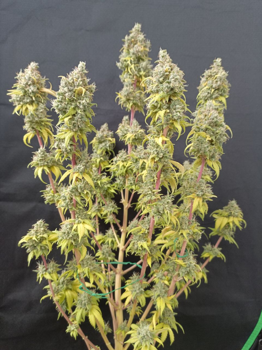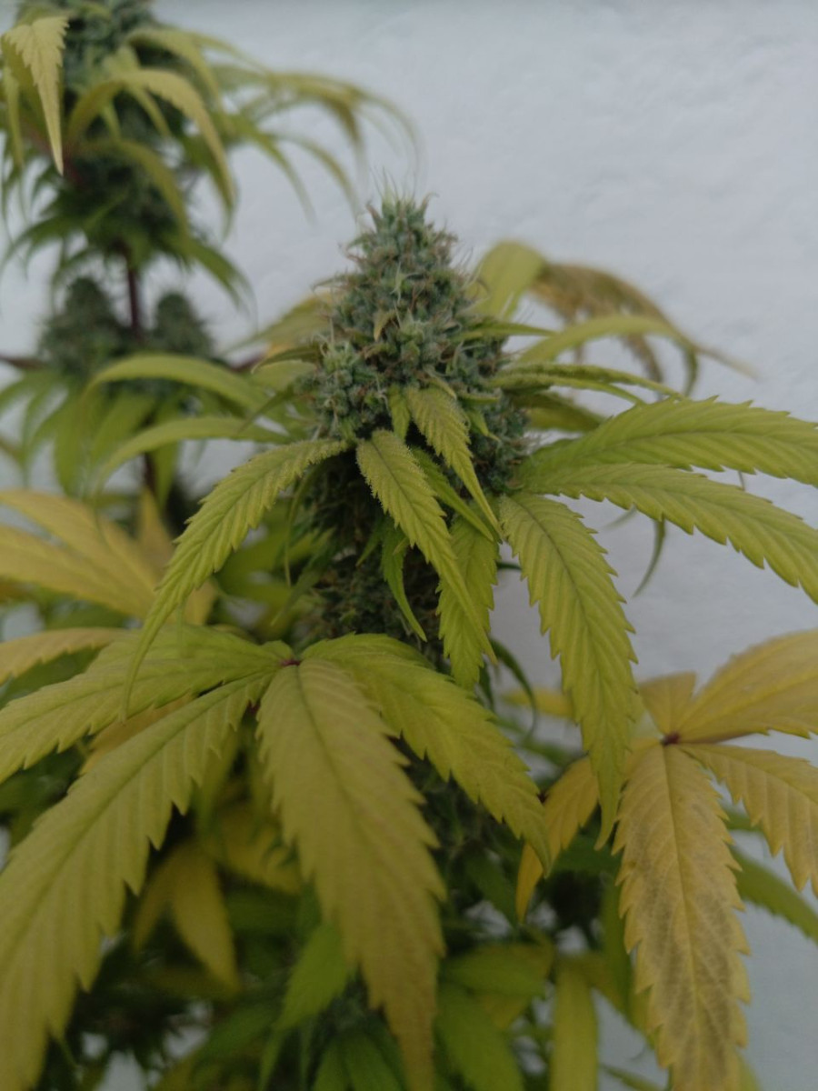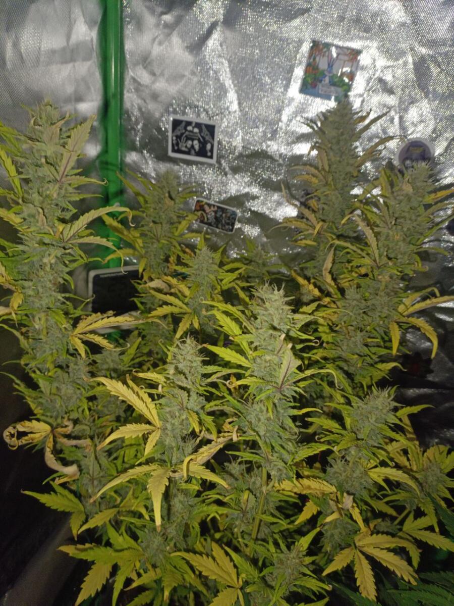 50 дней цветения, растет как на дрожжах, удобрения кушает много, запах на данном этапе переходит с более лимонного на более афганский,буду держать как по паспорту, а далее увидим.