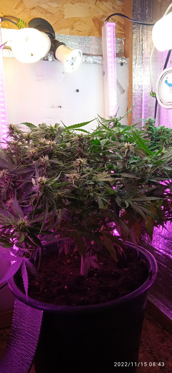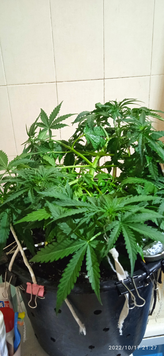 всем добра нам уже четыре недели условия остаются прежние запах усиливается стимуляторы и удобрения трёх компонентное сегодня пролил гуматом калия продолжаю тренировки был надлом центрального стебля но при этом стресса не было даже не повяла ни сколько температура в боксе тридцать пять влажность пятьдесят процентов уже начался предцвет всём желаю успехов